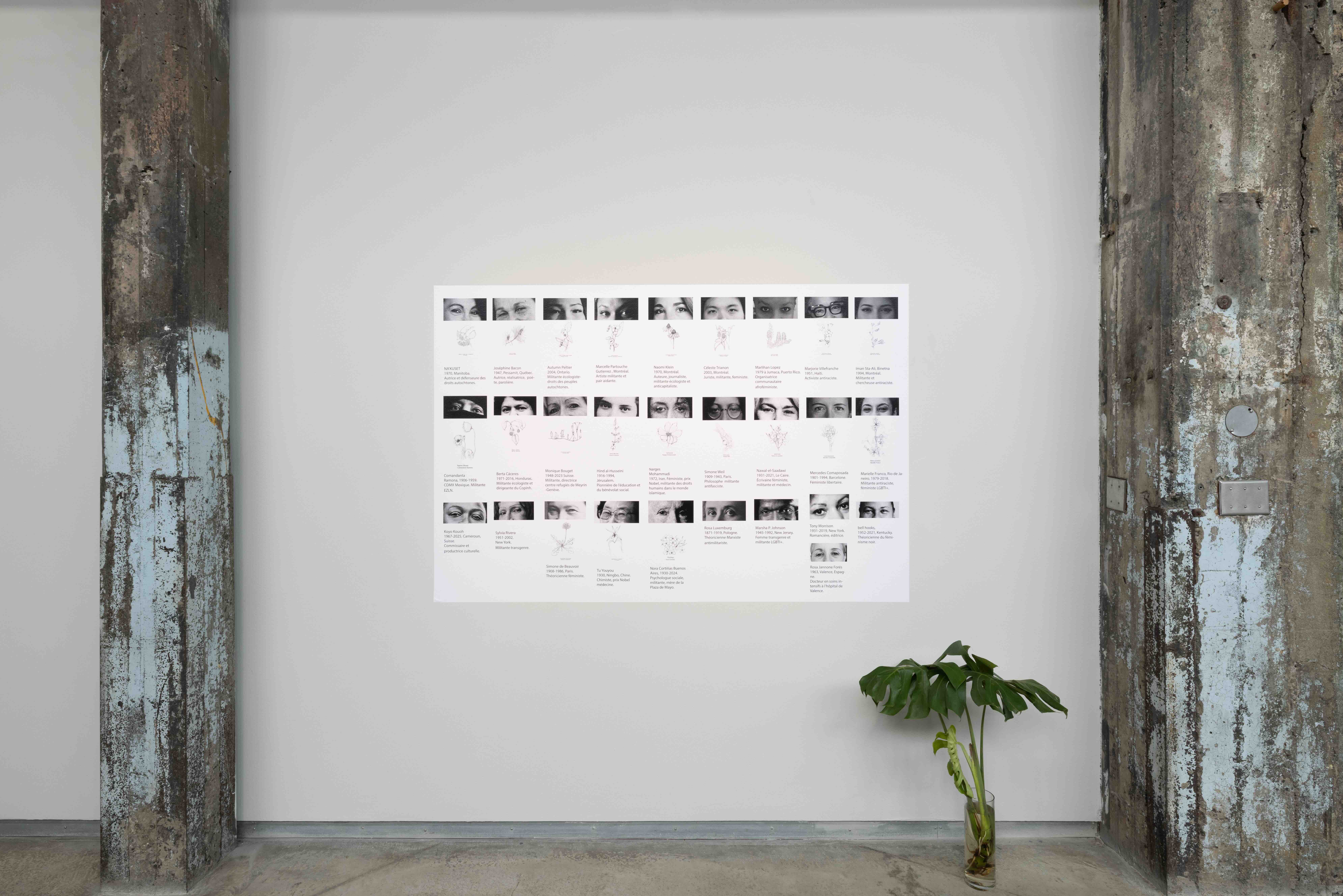 Since 2020, Paula Valero Comín’s Rosa Luxemburg Resistant Herbarium has been unfolding in different cities, adapting to each specific territory, in order to form an atlas. Valero Comín pairs local plant species, chosen for their properties, with women engaged in protecting all forms of life. Developed in collaboration with communities, the project generates an affective, botanical, and political genealogy that reveals diverse forms of resistance. The Montréal iteration continues this exploration by weaving together human stories and urban biodiversity. Valero Comín highlights the connections between ecology and social struggles, inviting us to reconsider our place within these ecosystems.